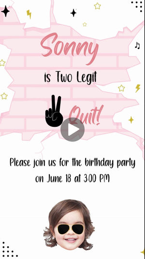 Two Legit Girl Birthday Video Invitation - Two Legit Theme Birthday Party Invite | Canva Template | Instant Download