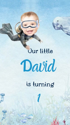 Bring the magic of the ocean to life with a mermaid & underwater adventure theme featuring your child’s name and face. Perfect for young ocean explorers, this editable video invitation creates a fun, personalized, and memorable birthday celebration.