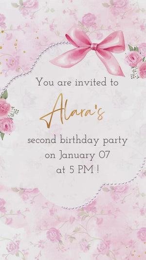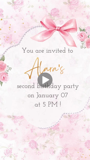 Fancy Pink Bow Girl Birthday Animated Video Invitation | Canva Template | Instant Download