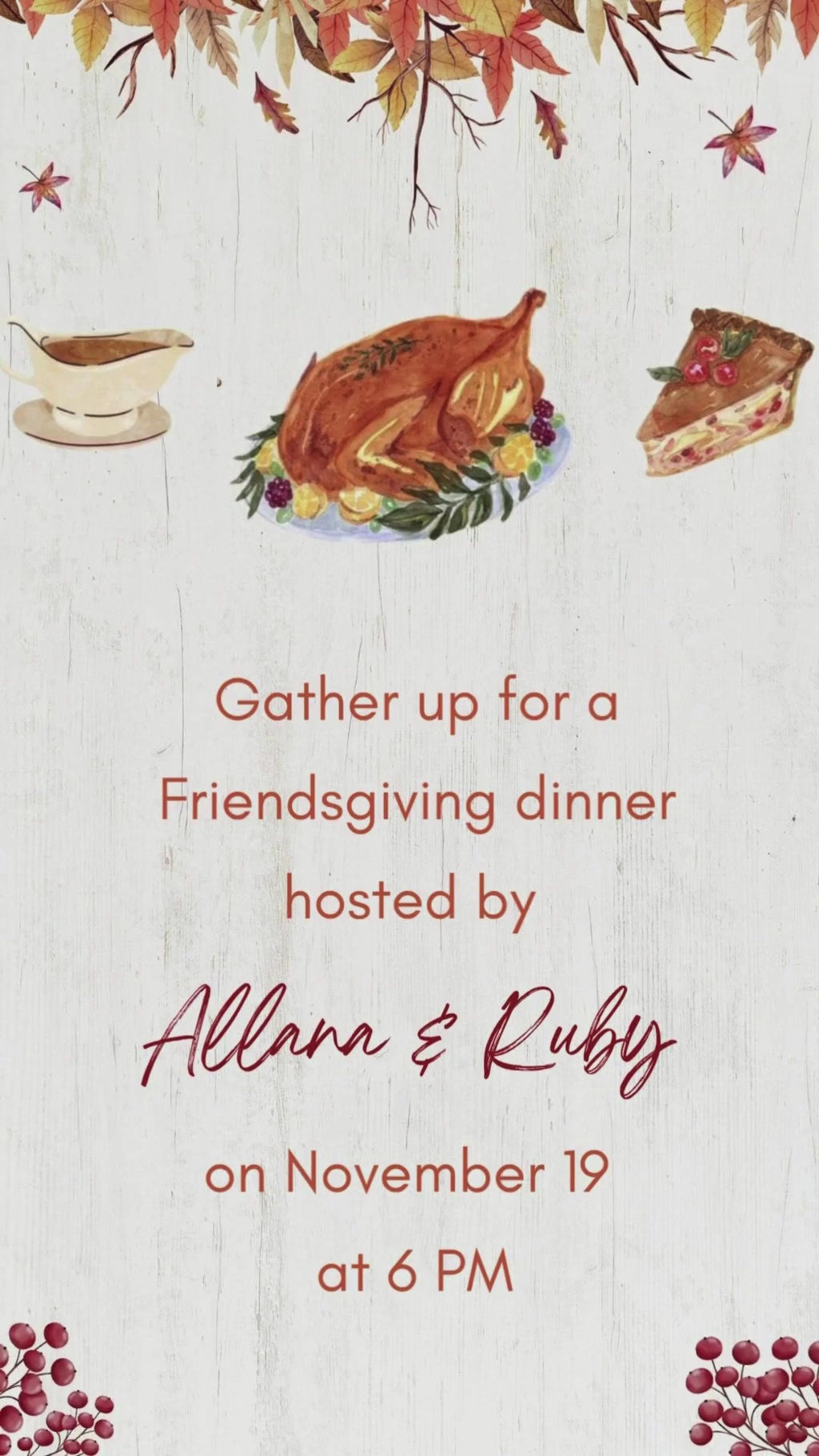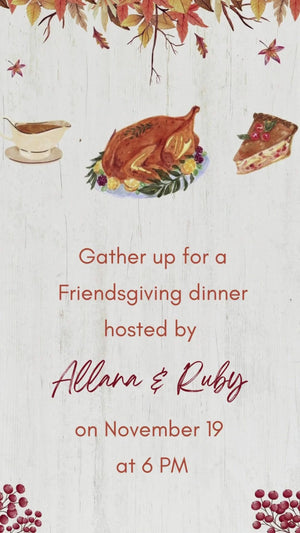A warm table, good food, and even better friends — it’s time to celebrate Friendsgiving in style! This beautifully animated Friendsgiving Video Invitation sets the perfect mood for a cozy, heartfelt gathering filled with laughter, gratitude, and autumn charm.