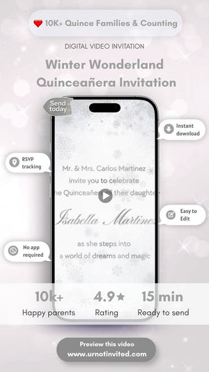 Add this Winter Wonderland Quinceañera Video Invitation to your cart and start editing in minutes.
