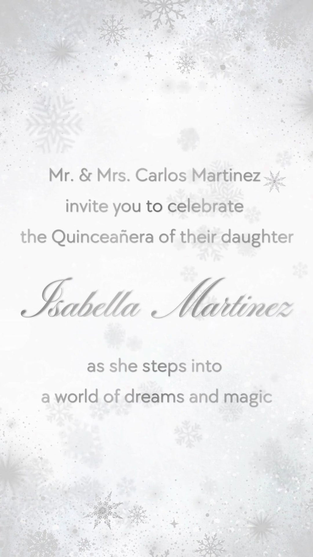 Perfect for winter themed quinceañeras, this animated invitation helps create an unforgettable first impression for your special celebration.
