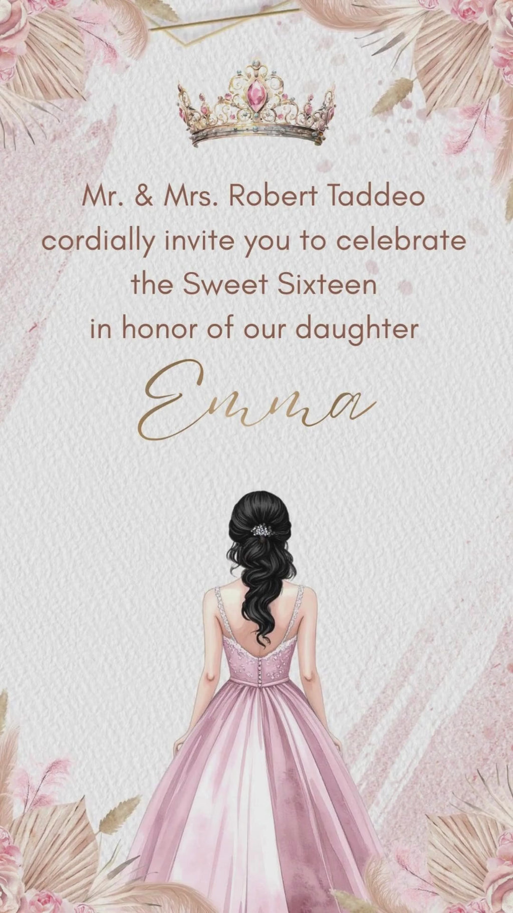 Celebrate your milestone in effortless style with our Boho Sweet 16 Birthday Video Invitation — a dreamy, nature-inspired design perfect for free-spirited teens! With soft neutral tones, pampas grass, delicate florals, and flowing animations, this digital invite beautifully captures the essence of boho elegance.