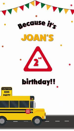 Celebrate with fun on the move using our Wheels on the Bus Birthday Video Invitation — a playful blend of bright colors, cheerful bus elements, and sing-along vibes. This adorable digital invite captures joy, music, and kid-friendly excitement. Perfect for a fun-filled, lively, and memorable birthday celebration. Set the tone for a happy and unforgettable ride.