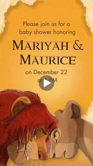 This Lion King Simba Baby Shower Video Invitation brings warm safari tones, adorable Simba-inspired elements, and soft animated jungle details to set the perfect wild-yet-magical vibe. Whether you’re planning a safari-themed baby shower, a jungle adventure celebration, or a golden Simba-style welcome party, this digital invite creates an unforgettable first impression.