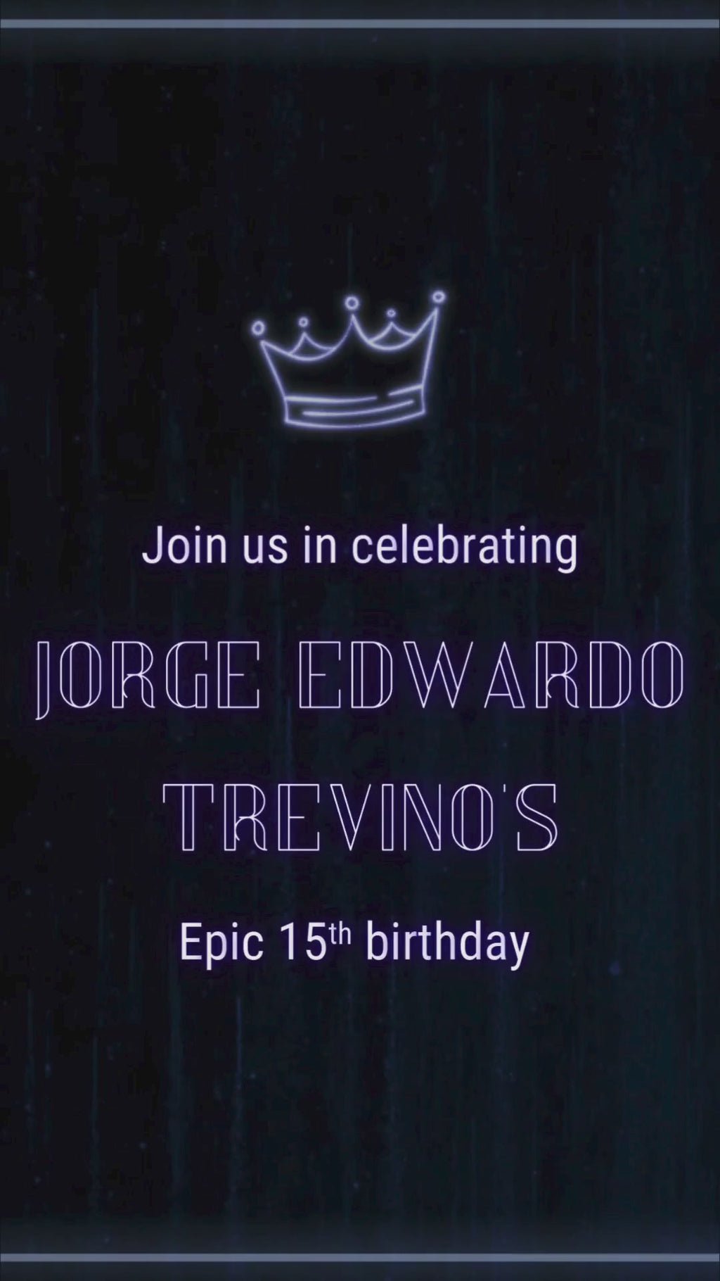 This Neon Blue 15th Birthday Video Invitation is vibrant, modern, and designed to make your celebration stand out. Featuring glowing blue neon lines, LED-style animations, futuristic typography, and sleek party visuals - this invite delivers a high-energy look perfect for a stylish 15th birthday event.
