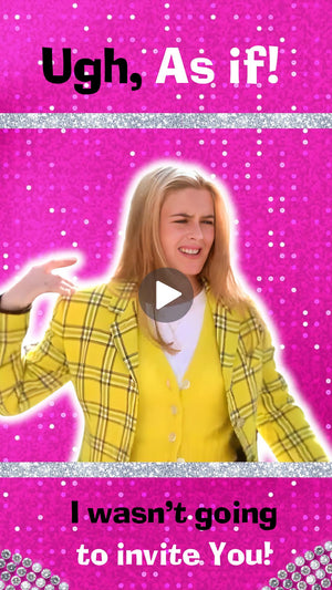Transporta a tus invitados a la icónica era de los 90 con nuestra invitación digital de cumpleaños Clueless. Inspirada en la película clásica de culto que definió a una generación, esta invitación captura la energía vibrante y el estilo moderno de Cher y su equipo de Beverly Hills.