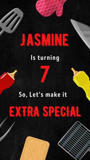 Tenga la libertad de cambiar la música y la redacción según sus preferencias. ¡Haga de la tradición de la barbacoa familiar una parte vital de la vida de su hijo cuando elija este tema para su invitación digital !