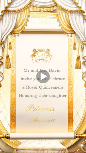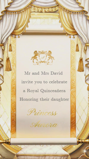 Make her Sweet 16 unforgettable with our Royal Quinceañera Video Invitation — a luxurious blend of regal gold accents, elegant details, and majestic princess charm. This digital invite is perfect for a glamorous, royal-inspired celebration filled with sophistication and grace. Designed to feel both classy and enchanting, it sets the tone for a grand and unforgettable Quinceañera experience.