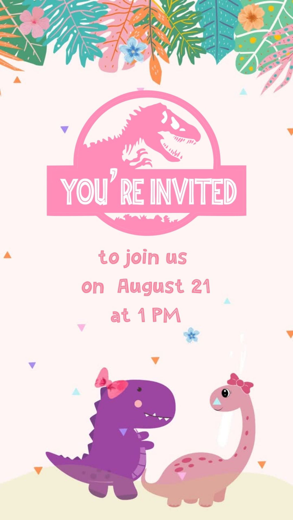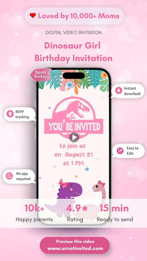Asegúrate de que todos estén presentes enviando esta linda invitación a la fiesta de cumpleaños de Dino Girl.