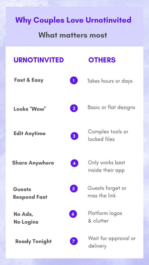 ✧ Crystal-clear video playback – no blur or compression ✧ One-click RSVPs – guests reply instantly online ✧ Automatic reminders – no more chasing confirmations ✧ Real-time tracking – see who opened and RSVP’d ✧ Guest limit control – manage attendance with ease