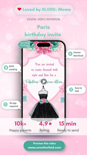 Celebrate in chic style with our Paris Birthday Video Invitation — a stylish blend of Eiffel Tower elegance, soft pink tones, and Parisian charm. This beautiful digital invite captures a classy and romantic celebration vibe. Perfect for a fashionable and sophisticated birthday party. Set the tone for a trés chic and unforgettable event.