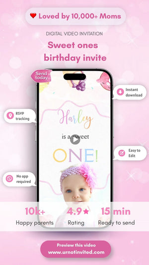 Sweet One Birthday Animated Video Invitation | Canva Template | Instant Download