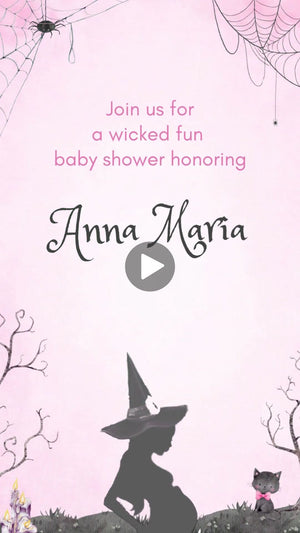 White-Pink Halloween Girl Baby Shower Animated Video Invitation | Canva Template | Instant Download